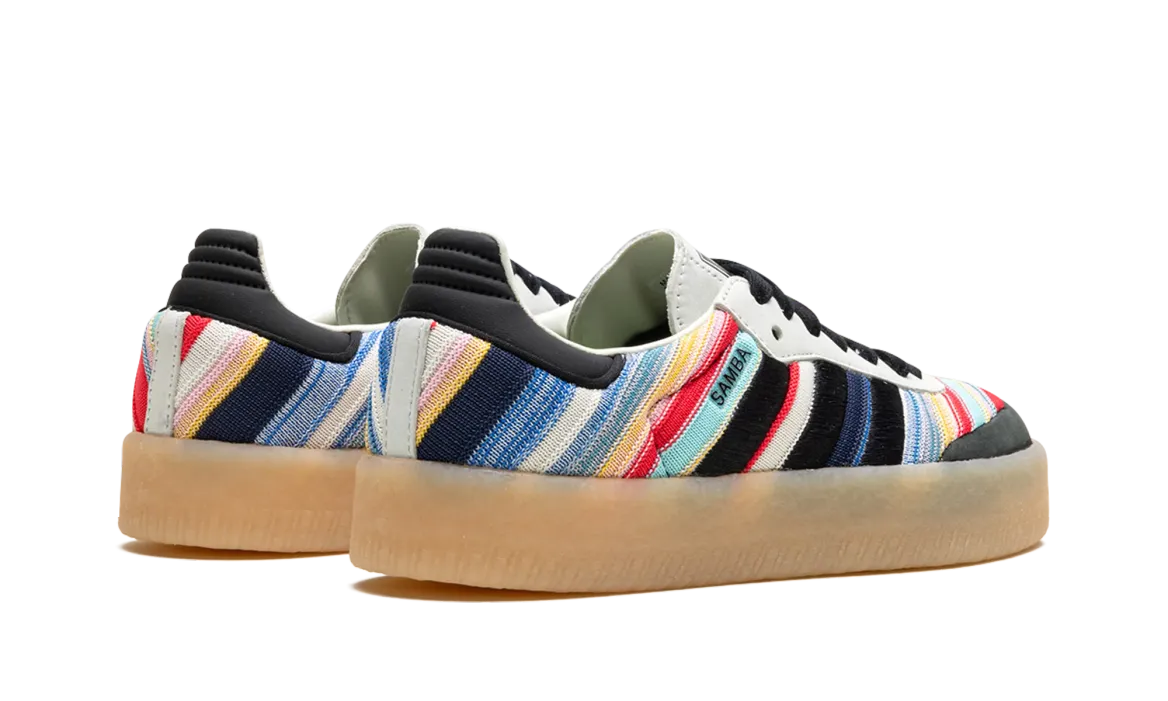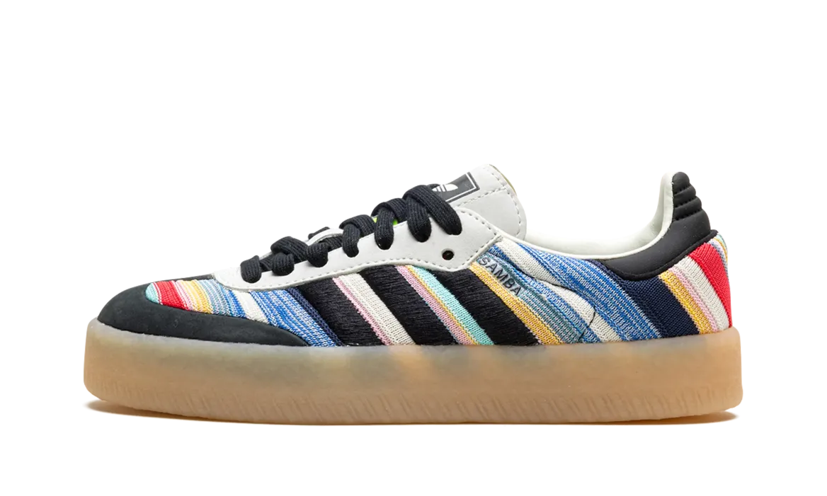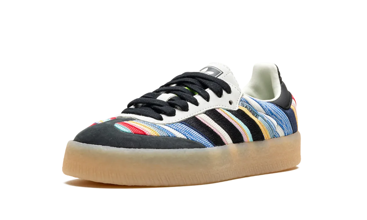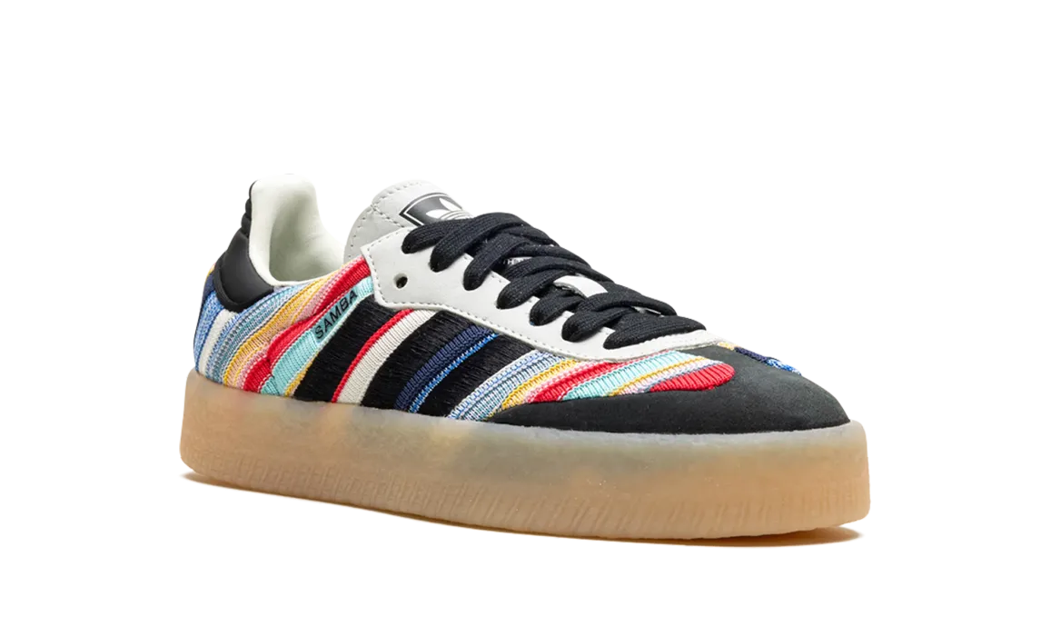 The KSENIASCHNAIDER x Women��s Adthtidas Sathtmbae ��Core Black/Ivory�� is a collaboration by the clothing brand and adidas on the contemporary lifestyle shoe made with eco-friendly materials. Made with at least 20% recycled materials, the Women��s Adthtidas Sathtmbae by KSENIASCHNAIDER features a multicolor textile upper with embroidered black Three Stripes on the sides. A ��Samba�� logo appears on the lateral side, while classic ��adidas�� branding is seen on the tongue. Underfoot, a semi-translucent, platform-style rubber sole completes the look.�Ivory Black